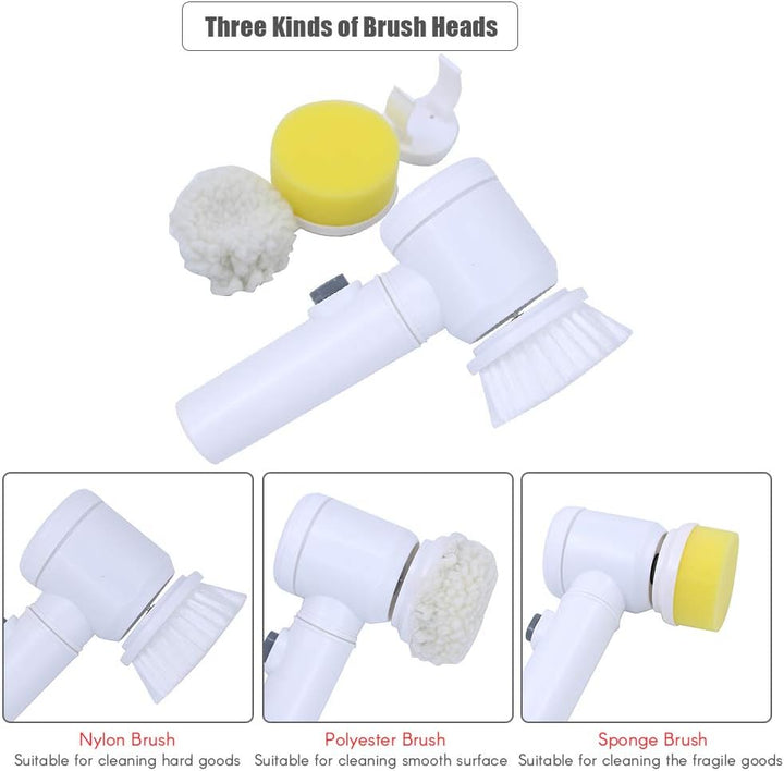 5-in-1 Electric Cleaning Brush, Battery Powered Scrubber for Kitchen, Bathroom & Home | فرشاة تنظيف كهربائية 5 في 1، جهاز كشط يعمل بالبطارية للمطبخ والحمام والمنزل