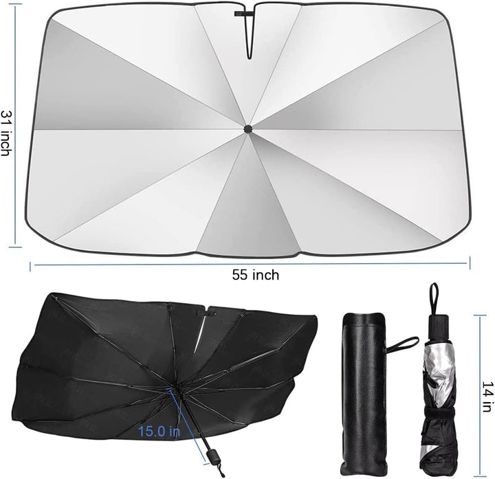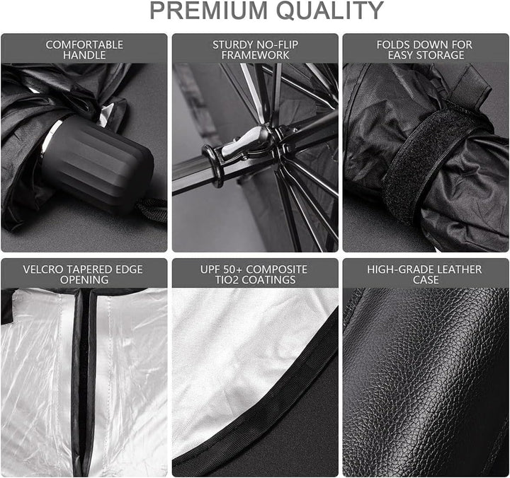 Car Windshield Sun Shade Umbrella – UPF50+, 2023 Foldable Full Cover, Upgraded Opening Design, Automotive Sun Protection مظلة واقية للزجاج الأمامي للسيارة – UPF50+، 2023 قابلة للطي، تغطية كاملة، تصميم فتح مطور، حماية من الشمس للسيارة