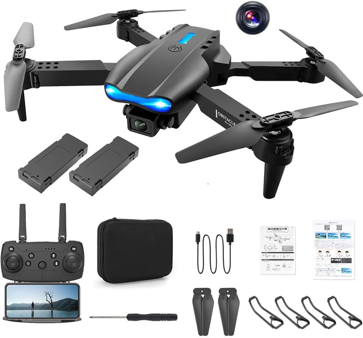 E99 Drone with Camera, Folding Remote Control, WiFi FPV & App Control, Storage Bag, 2 Batteries | طائرة بدون طيار E99 بكاميرا، تحكم عن بعد قابلة للطي، واي فاي FPV والتحكم عبر التطبيق، حقيبة تخزين، بطاريتان