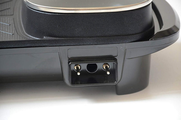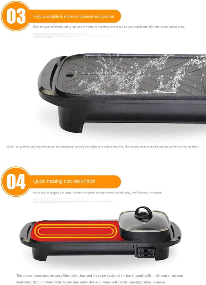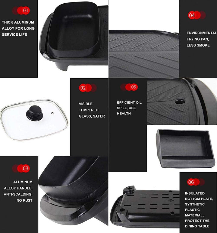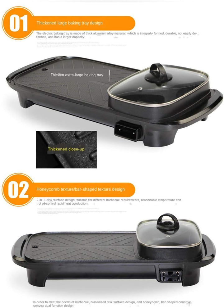 Electric BBQ Grill & Hot Pot 2-in-1 – Smokeless Non-Stick Indoor Roasting Pan, Multi-Functional Shabu Hot Pot, Family Party Use (UK Plug) شواية كهربائية مع قدر ساخن 2 في 1 – بدون دخان، غير لاصقة، للشواء الداخلي والشابو، مثالية للحفلات العائلية (UK Plug)
