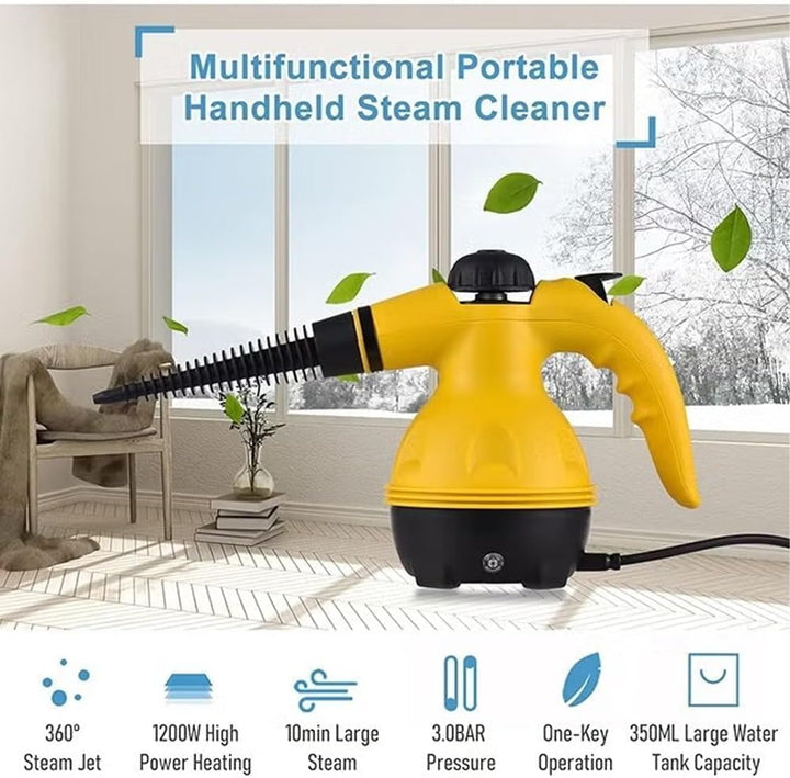 High Pressure Steam Cleaner – 1200W Portable Handheld Cleaner with 9 Accessories, Multifunctional for Home, Kitchen, Car & Windows (A) جهاز تنظيف بالبخار عالي الضغط – جهاز محمول 1200 واط مع 9 ملحقات، متعدد الاستخدامات للمنزل والمطبخ والسيارة والنوافذ (A