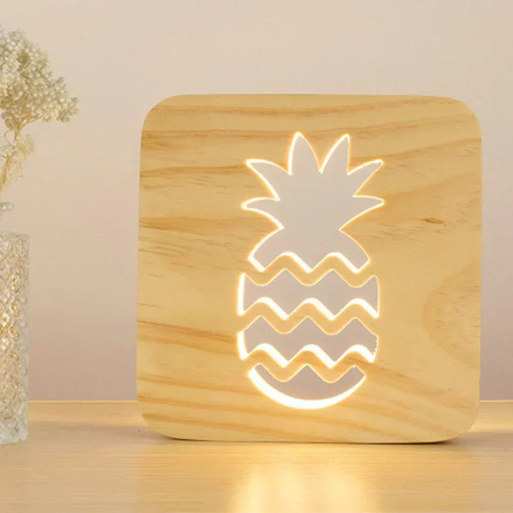 LED Wooden Pineapple Night Light USB